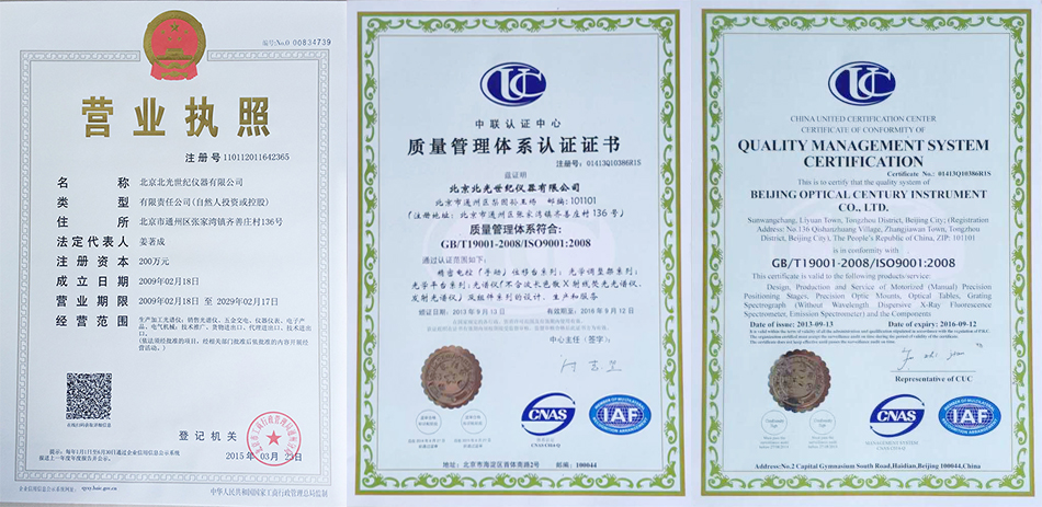 營業執照                      質量管理認定證書(中)       質量管理認定證書(英)